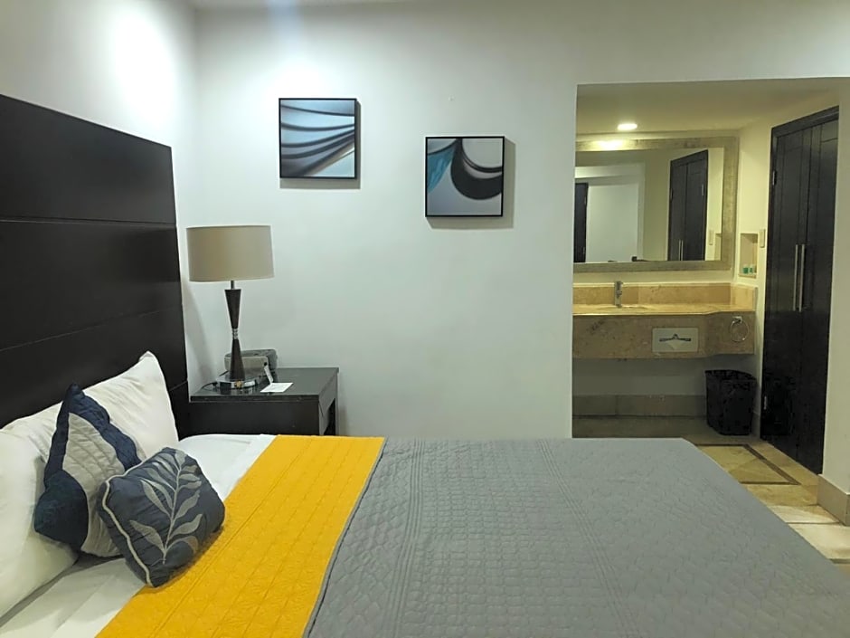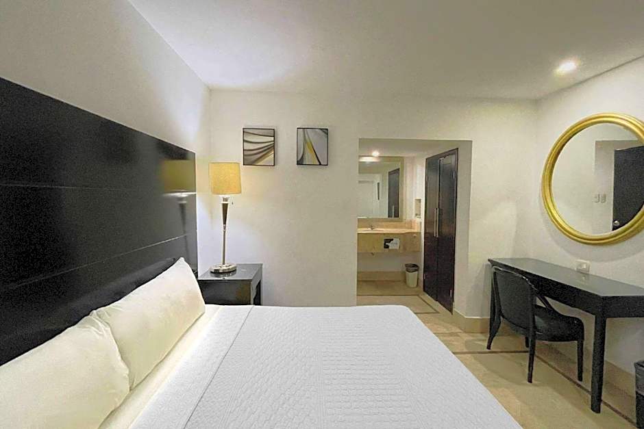 Enjoy our modern and cozy rooms equipped with a king-size bed. Stay connected with our free high-speed wireless internet and Ethernet connection. The rooms feature individual air conditioning for your comfort and a flat-screen cable TV with 135 premium channels and remote control. Additionally, you will find a telephone, alarm clock radio, desk, complimentary bottled water, and an electronic safe for your belongings. The bathroom, elegantly decorated with marble, is equipped with a shower, amenities, hair dryer, iron, and ironing board.